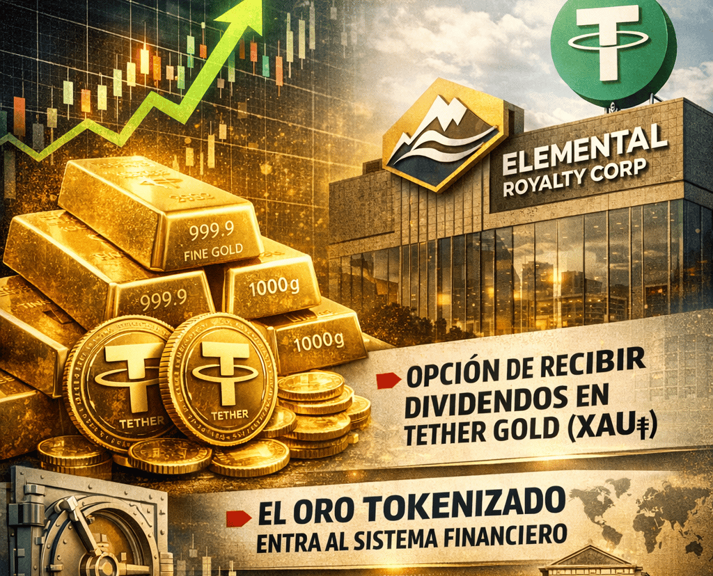 Lo anunciado el 17 de febrero de 2026 es que Elemental Royalty Corporation (una compañía cotizada vinculada al sector del oro) habilitará para ciertos accionistas la opción de recibir su dividendo en forma de Tether Gold (XAU₮) —es decir, convertir el pago de dividendos en una exposición directa a oro mediante un token respaldado por oro físico.